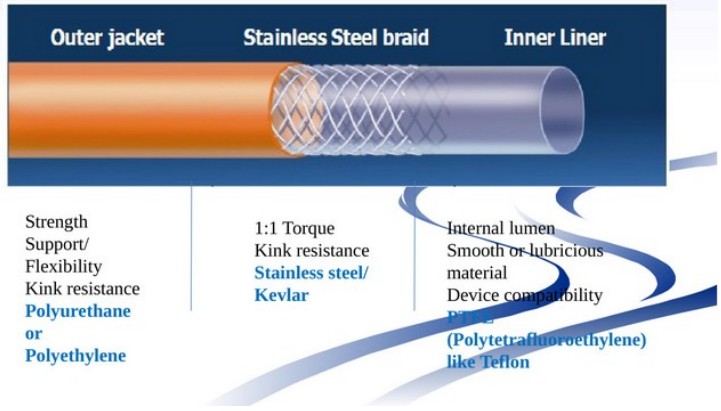 لایه بافته شده: بافته شده توسط سیم فلزی (مانند سیم فولادی ضد زنگ)، استحکام شعاعی و توانایی ضد پیچ خوردگی را فراهم می کند و اطمینان می دهد که قسمت درج می تواند به طور انعطاف پذیر خم شود اما فرو نریزد.